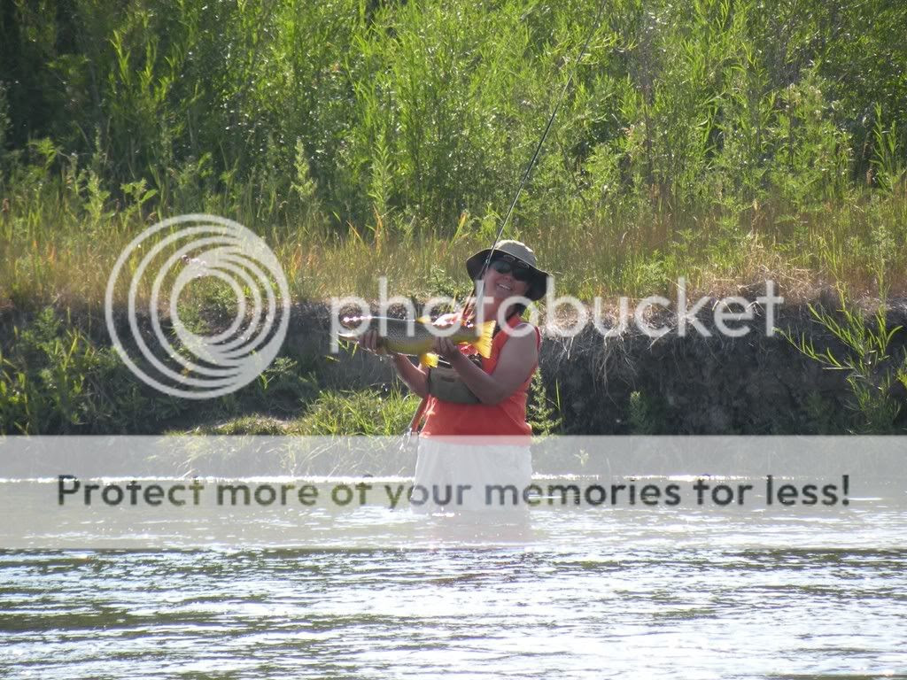 I love the zoom and I sometimes forget how nice it is. I had posted some fish photos a few days ago that Rick took of me across the river. I wanted to show the comparison of the shot both ways, without the zoom and with the zoom. Can you see me in the first photo?